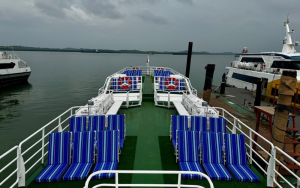 Fast boat ini dilengkapi dengan berbagai fasilitas seperti toilet, sistem navigasi GPS, radio komunikasi dari kapal ke pantai, serta perlengkapan keselamatan standar. Kapal juga dioperasikan oleh kapten dan kru yang berpengalaman, sehingga perjalanan menjadi lebih aman dan terjamin.